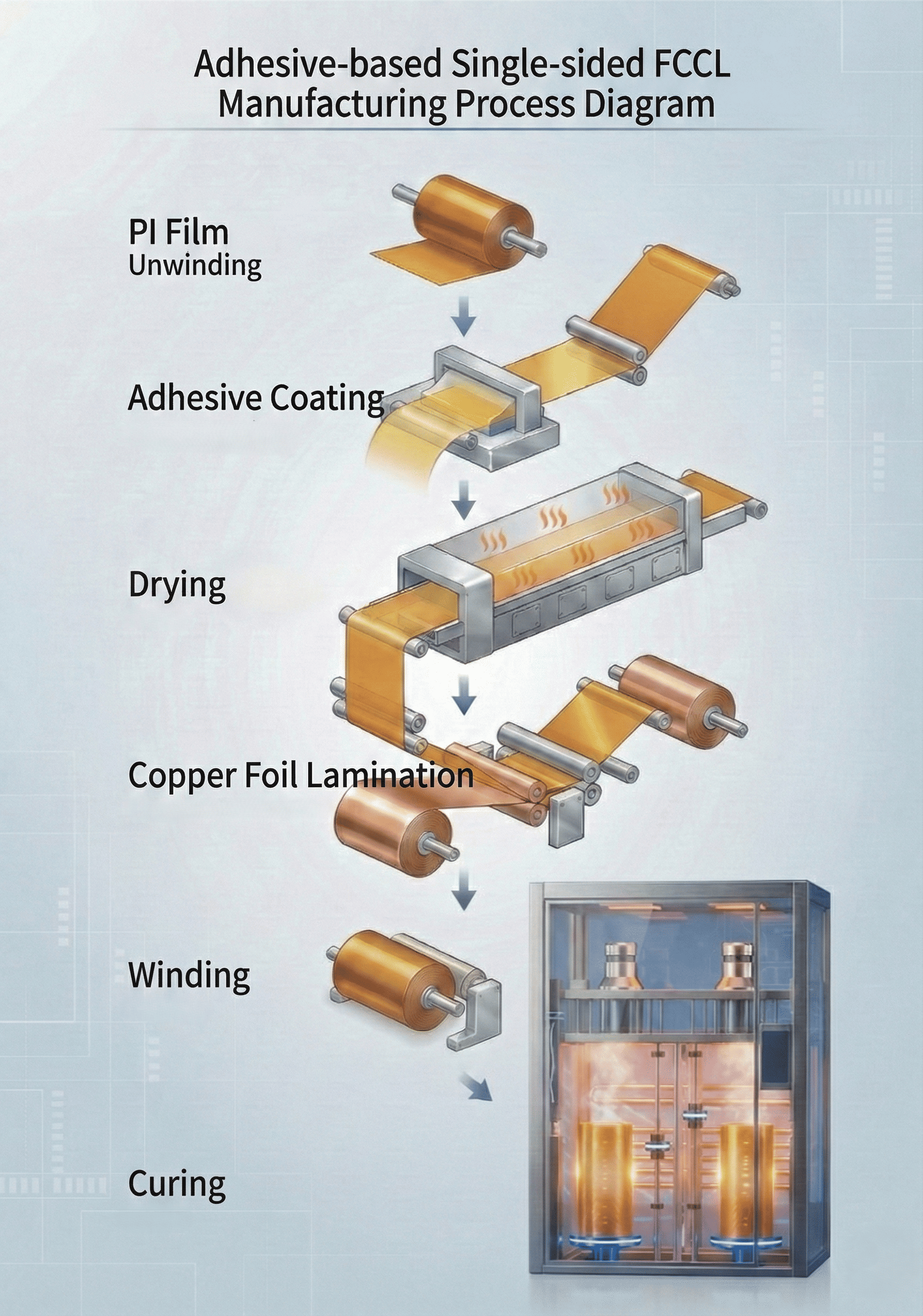 Adhesive-Based Single-Sided Flexible Copper Clad Laminate provides a stable, reliable, and highly flexible circuit foundation for FPC, helping customers achieve both performance and durability across diverse applications.